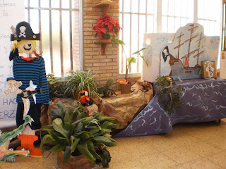 Este año han decidido disfrazarse tod@s de personajes de un Cuento que se ha trabajado en todas las clases para la ANIMACIÓN A LA LECTURA. El cuento de este año ha sido sobre Peter Pan y el País de Nunca Jamás. Por eso, l@s maestr@s se han disfrazado de personajes de dicho cuento: Campanilla, Peter Pan, el capitán Garfio y sus piratas…. MUCHOS PIRATAS!!!!!!
